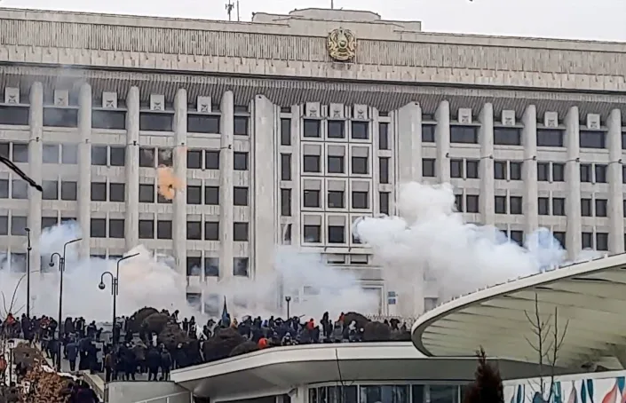 But Russia’s Tass news agency reported from Kazakhstan that the presidential residence in Almaty, where thousands of demonstrators had gathered outside, was on fire and that the city’s main administration building, which includes the mayor’s office, was burning from top to bottom hours after demonstrators broke in.