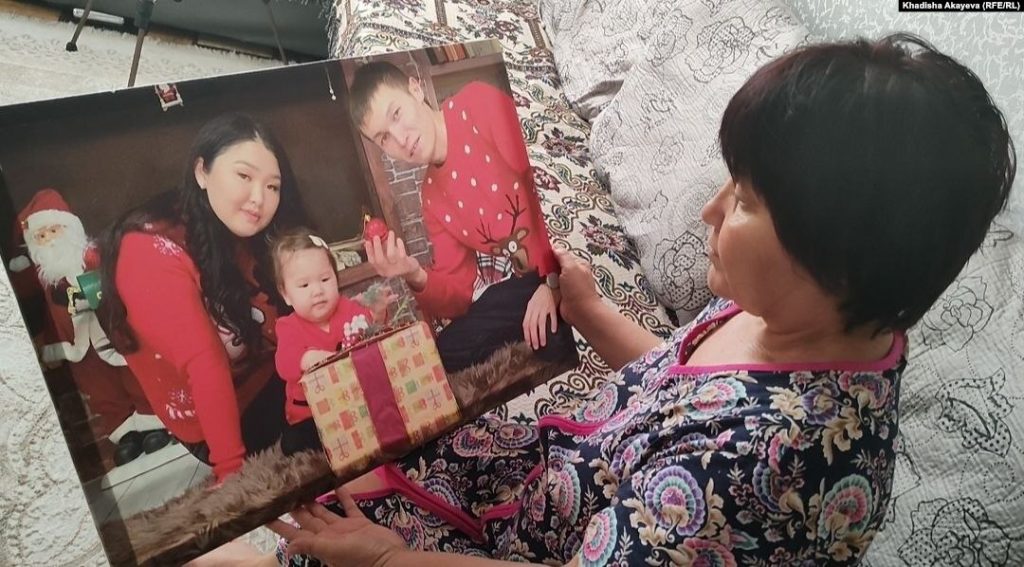 Арайлым Сағатбаева ұлы Қуаныш Қабылқановтың отбасымен түскен суретін көрсетіп отыр. Қуаныш 2022 жылғы Қаңтар оқиғасы кезінде оқ тиіп, мерт болды.