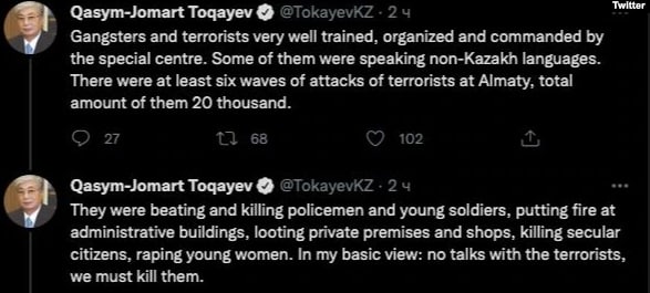 Во время январских событий в Казахстане правоохранительными органами был задержан и избит кыргызстанский музыкант Викрам Рузахунов. Через два дня, после вмешательства властей и общественности Кыргызстана, его освободили и доставили в Бишкек. Позже ему провели операцию в больнице. Викрам Рузахунов заявил, что подвергся пыткам со стороны сотрудников казахских правоохранительных органов. У музыканта были сломаны ребра, сотрясение головного мозга.